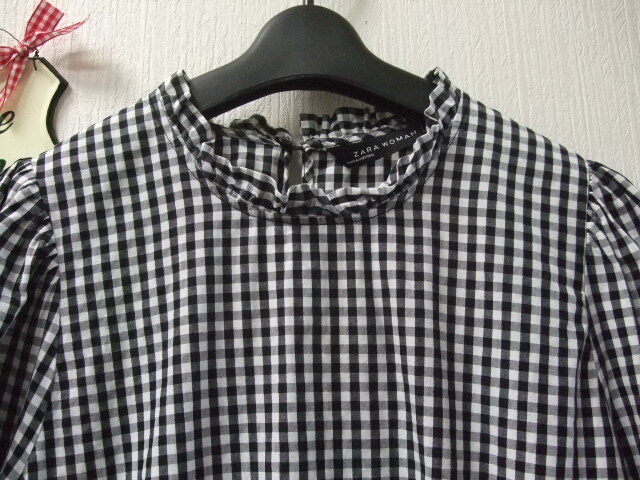 - ザラ woman お袖シャーリングフリル チエック(黒) M