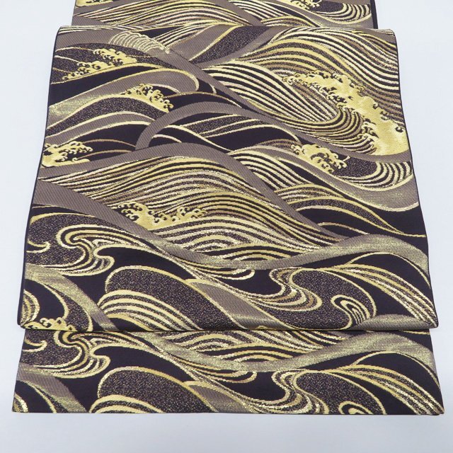 - 本袋帯 未使用 正絹 フォーマル 仕立て上がり 全通 波文 箔糸 きもの北條 A1235-7