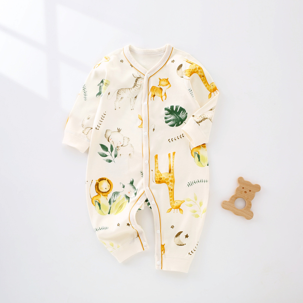 - ☆ どうぶつ ☆ 90cm ☆ ロンパース 長袖 ベビー ベビー ロンパース 長袖 ボディスーツ カバーオール ボディオール ベビー服 前開き 柄