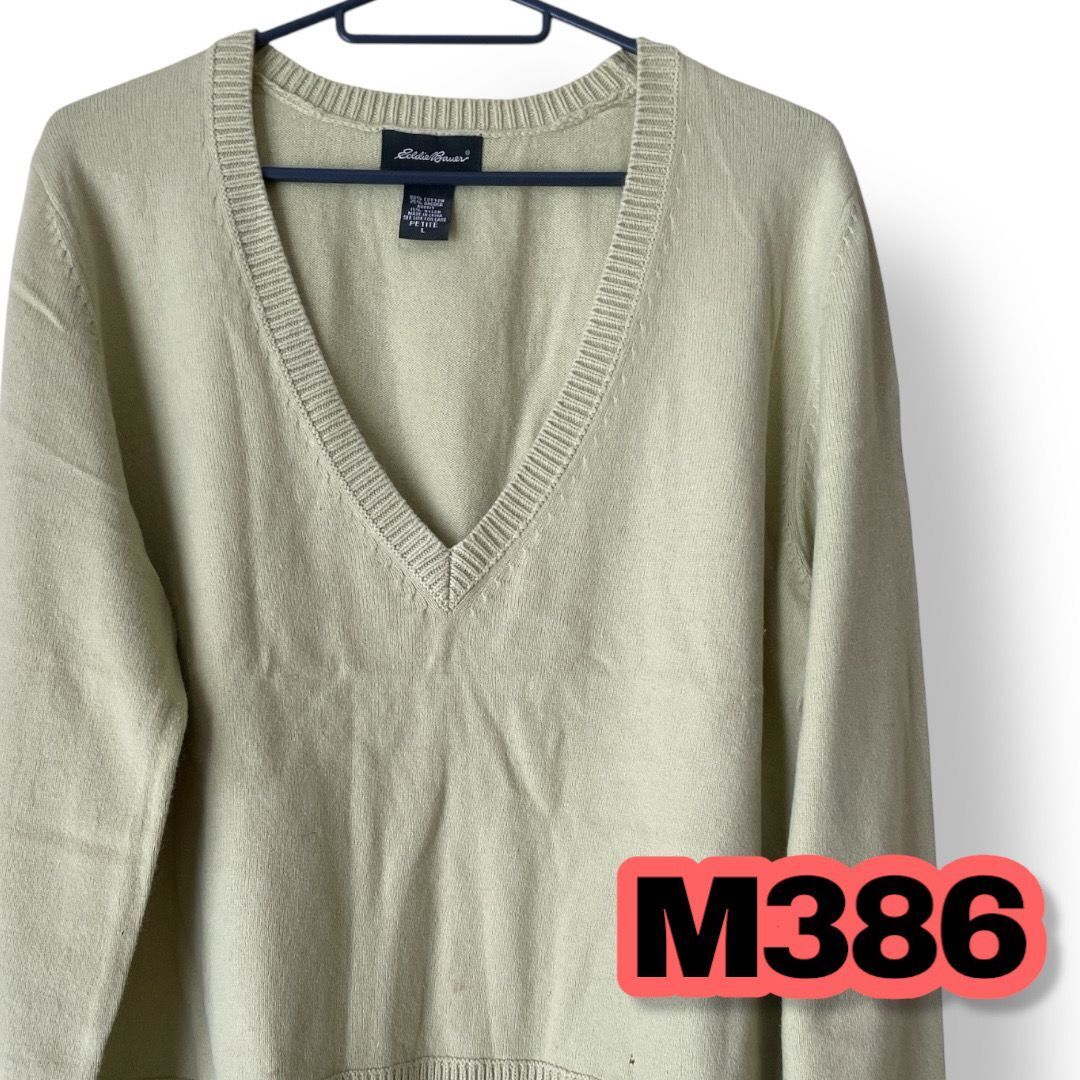 - Eddie Bauer(エディーバウアー) Vネック 長袖ニット 黄緑色 Lサイズ レディーストップス 管理M386