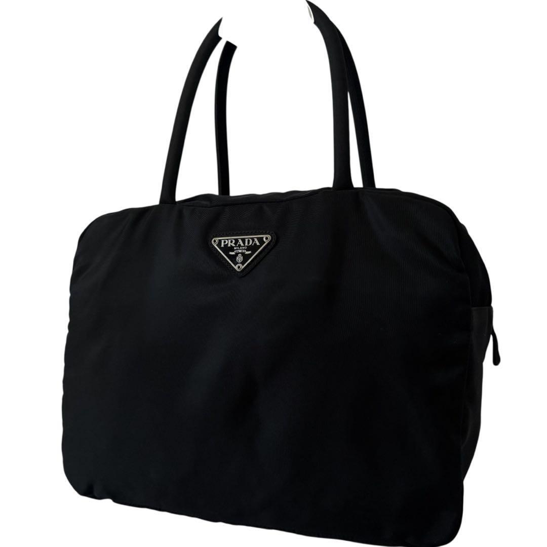 - 【良品】PRADA プラダ ハンドバッグ トートバック ミニボストン 肩掛け 通勤 通学 三角ロゴプレート テスートナイロン ブラック 黒 白タグ
