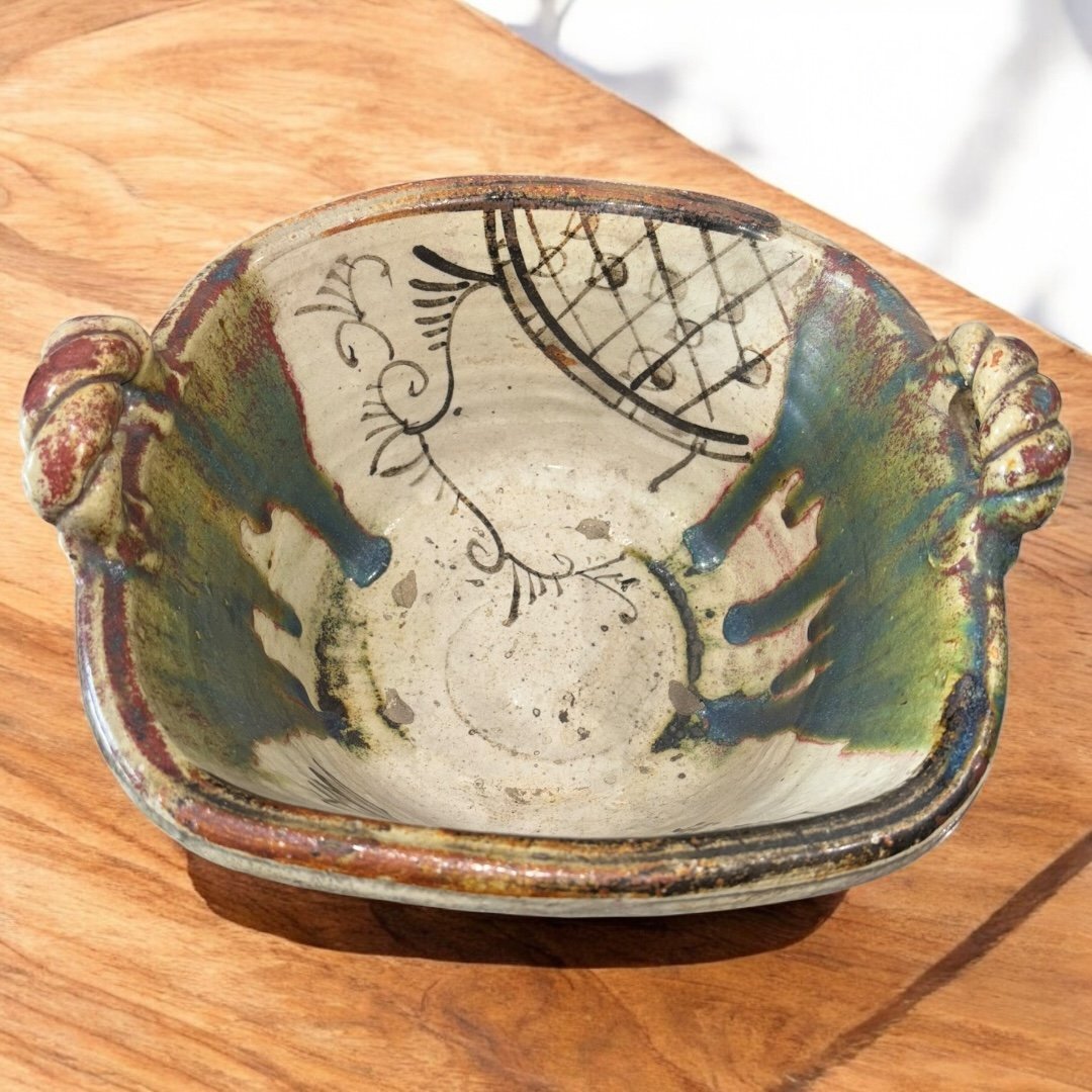 - 【FU10】1点物!! 織部 深鉢 大鉢 コレクション 飾り鉢 プランター 明治時代 アンティーク 骨董 工芸品 美濃焼
