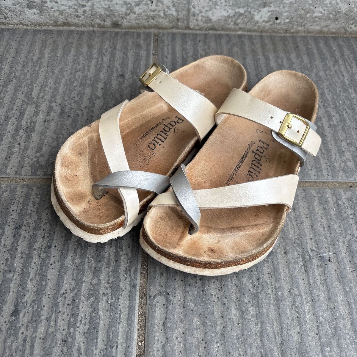 - ビルケンシュトック BIRKENSTOCK サンダル ホワイト シルバー レザー