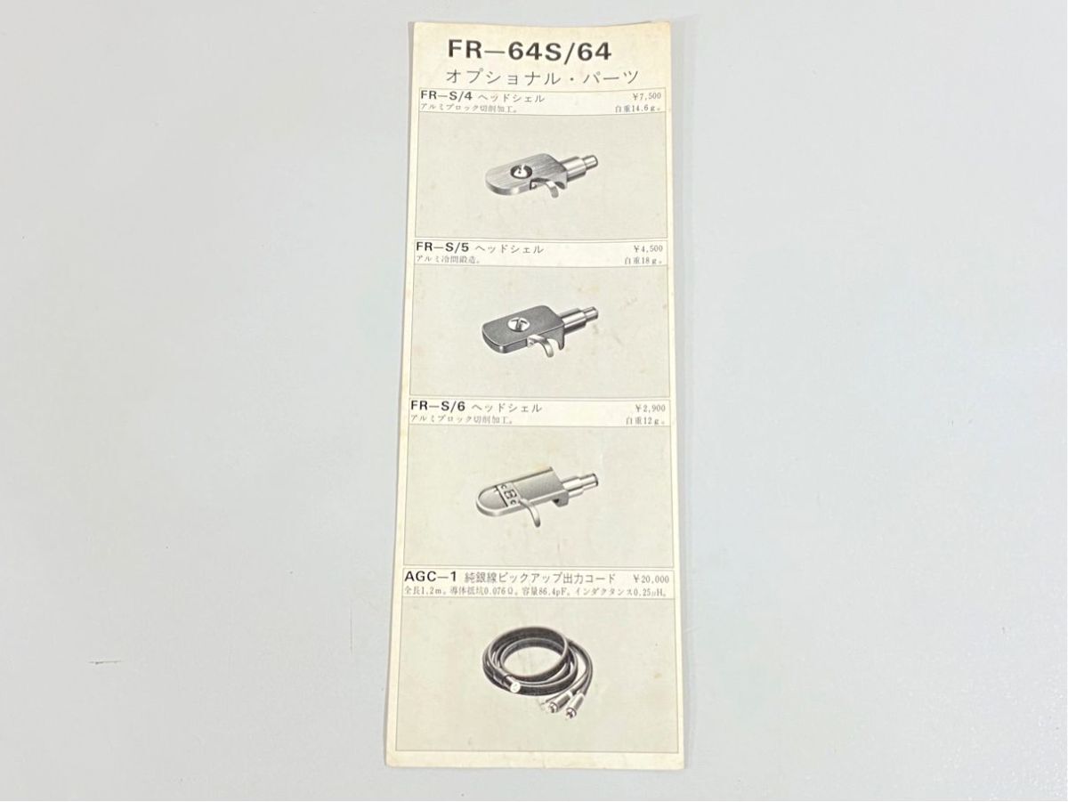 - n8157 Fidelity-Research フィデリティリサーチ FR-64 FR-64S トーンアーム パーツ用 カタログ 原本