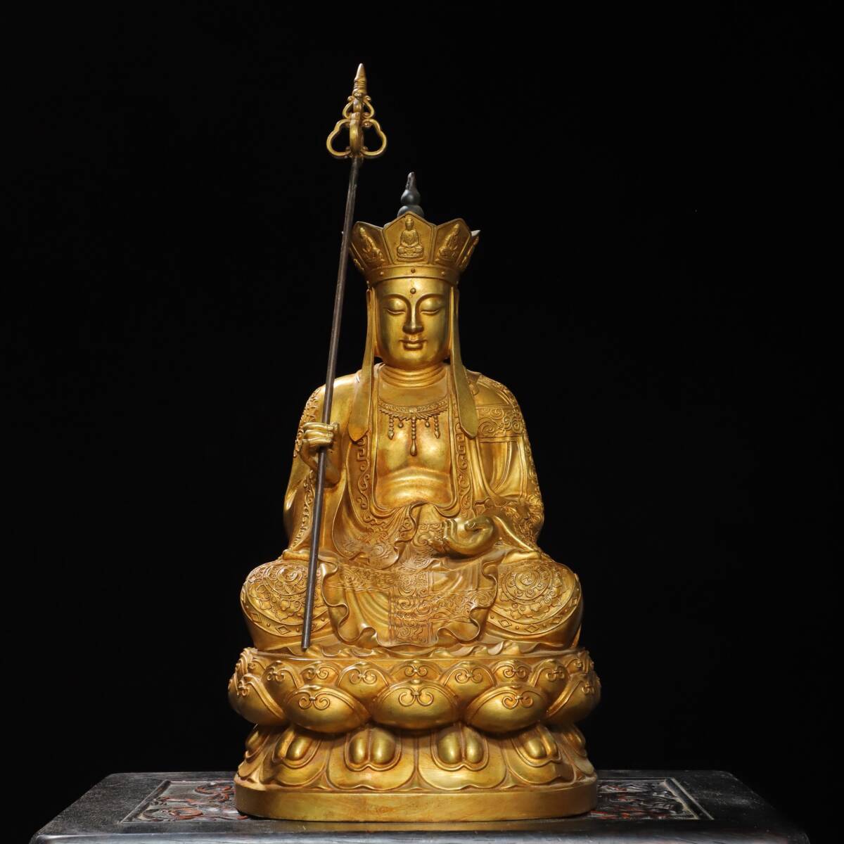 - ▽鴻▽ 銅製 塗金 地藏王菩薩像 仏像 宗教 仏教古美術 供養品 古賞物 古董品 時代物 稀少珍品 中国古玩 中国古美術