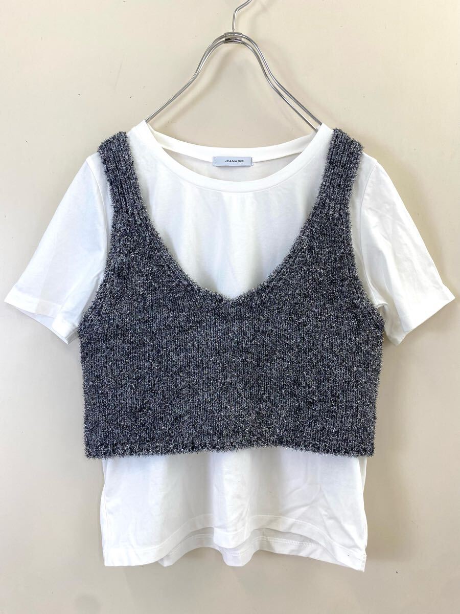 > ★ 2点セット* JEANASIS 爽やか白T & ラメベスト ◆ 半袖 Tシャツ カットソー ジレ ジーナシス◆W21 もMSU1-18