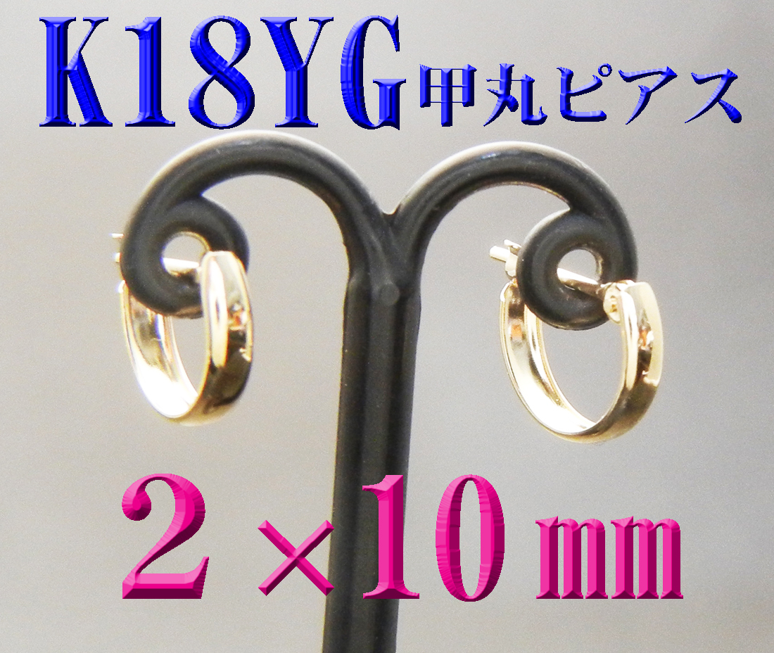 - 限定特価!K18 18金 2×10mm 甲丸フープピアス 新品 日本製 スナップピアス 刻印有り