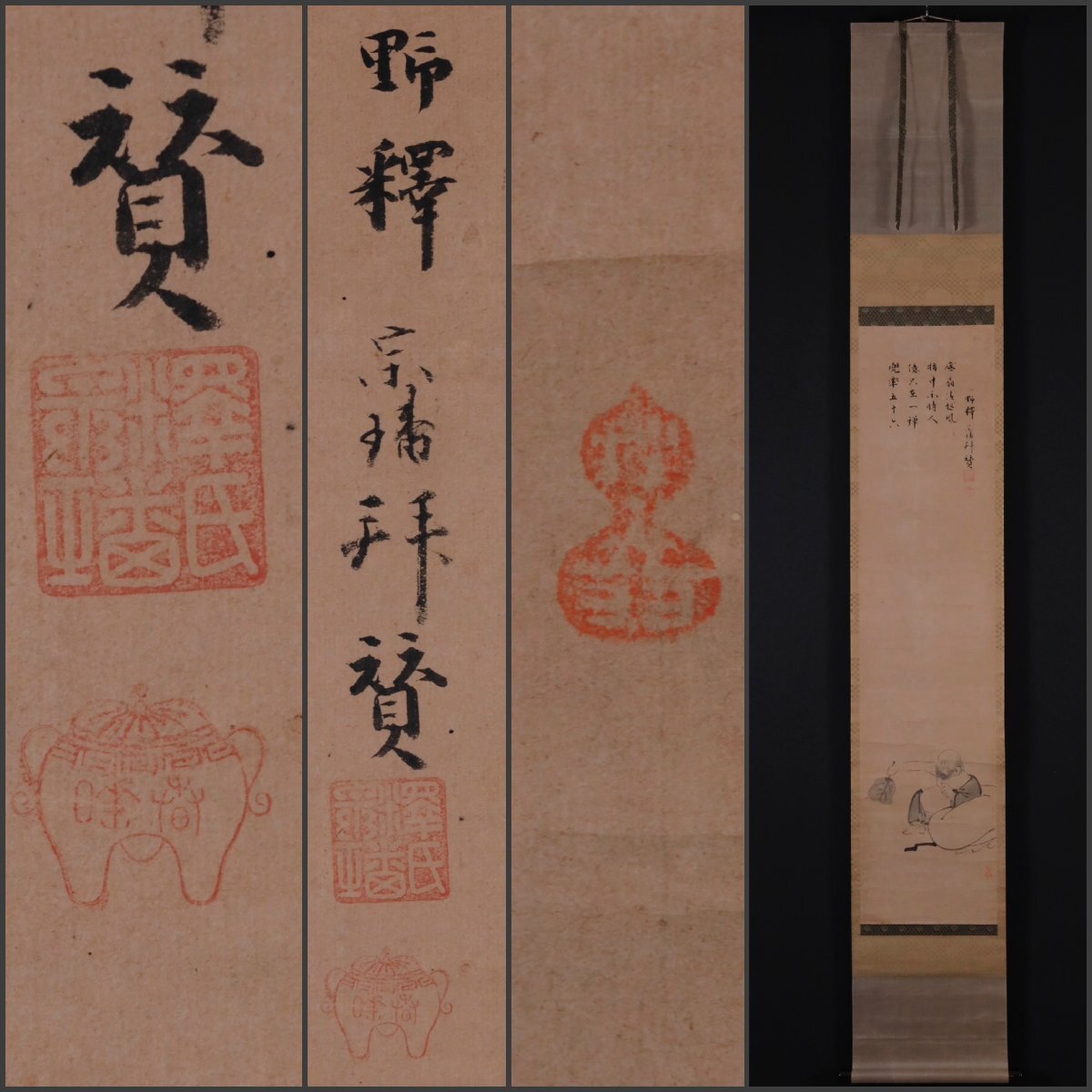 > 【模写】吉】12593 玉舟宗・松花堂昭乗 布袋画賛 臨済宗 大徳寺 真言宗 江戸前期 墨蹟 書 仏教 茶掛け 茶道具 掛軸 掛け軸 骨董品