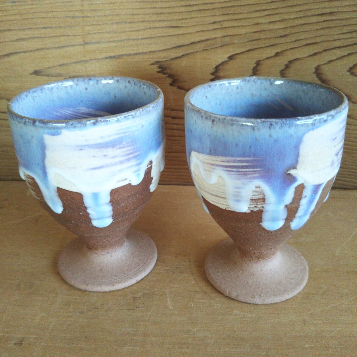 - 25071512 萩焼物 湯呑 ペア 酒器 茶器 陶器 カップ 足付 ワイングラス 酒盃