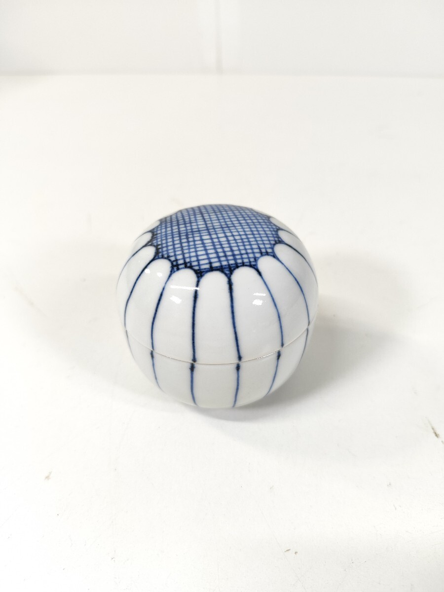 - t214 染付 【和善】 茶道具 蓋物 青花 香合 古玩 時代 骨董 合子 煎茶道具