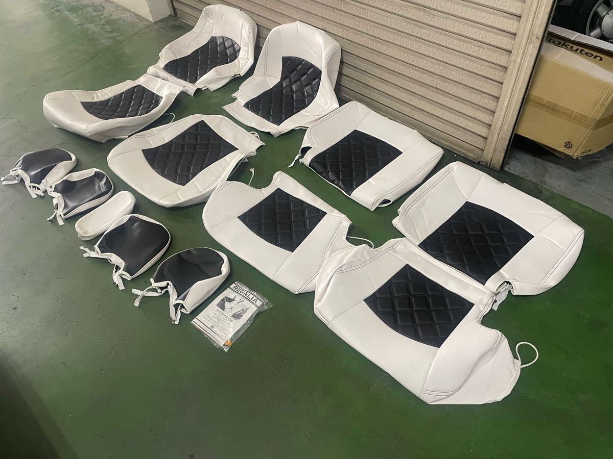 > ホンダ ライフ JB1 REGALIA シートカバー 一式 ダイヤモンドステッチ AT MT 共通 ギャル車 ツートンカラー 白 黒 ホワイト 使用期間短