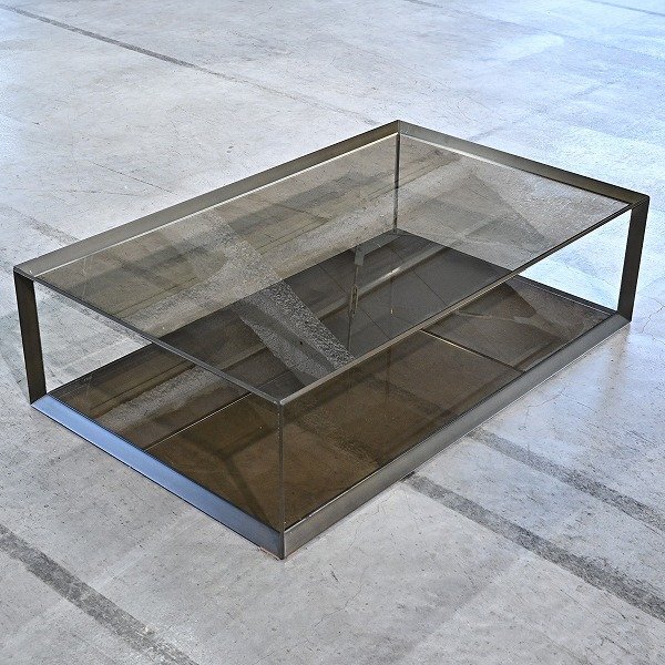 > ★ フランス Roshe Bobois 45万「metallica」カクテルテーブル ガラス センター ロー リビング ダイニング 客間 ロッシュボボア メタリカ