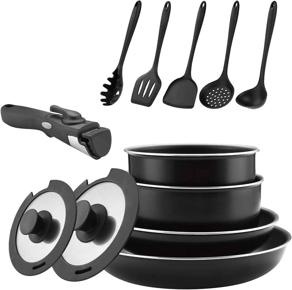 - ガス火/IH対応 フライパン 鍋 12点セット ダイヤモンドコーディング キッチ ンツールセット5点セット