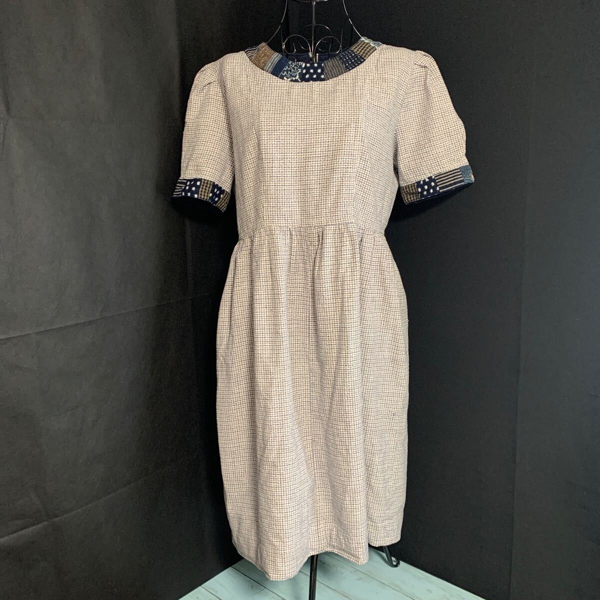 - ☆ワンピース 久留米絣 半袖 肩パッド付き 生地 リメイク素材 ハンドメイド 古布 型染め 絣 手作り パッチワーク かすり (A-2575)