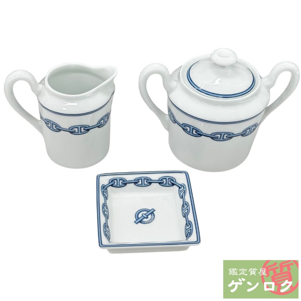 ☆HERMES エルメスよりシェーヌダンクル シュガーポット ミルクピッチャーが入荷致しました。商品画像について、実物に近いカラーを再現する様努めておりますが、お使いのモニターや端末の設定により色味が変わる場合がございます。予めご了承下さい。