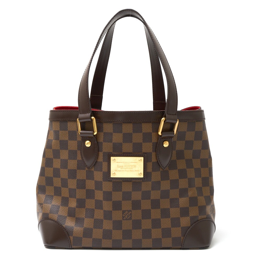 - LOUIS VUITTON ルイヴィトン ハムステッド PM N51205 トート ハンドバッグ ダミエ・エベヌ×レザー ブラウン×レッド×ゴールド レディース