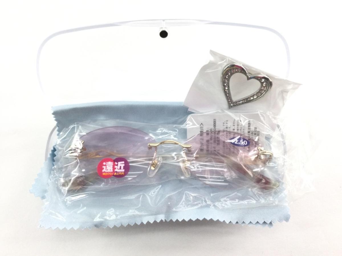 - 掛けて歩ける老眼鏡 累進多焦点 遠近両用レンズ シニアグラス +2.5 めがね掛けブローチ付き パープル