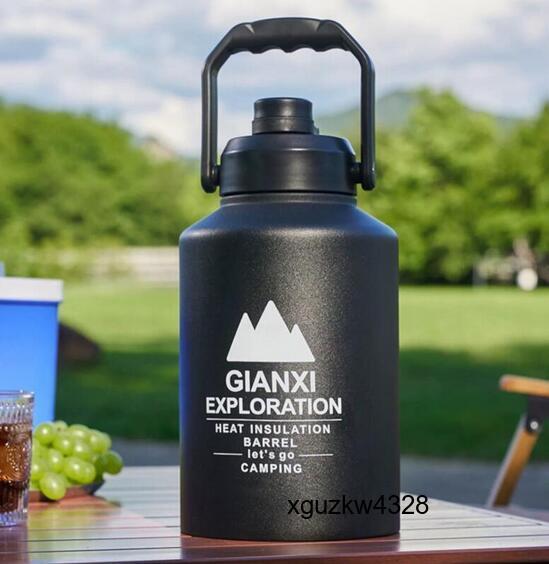 > 二重壁の真空断熱 超高品質 広口 ステンレス保温保冷氷筒 2L 氷が入れやすい キャンプやアウトドア 野外登山 14x28cm 緑4黒3の7つ