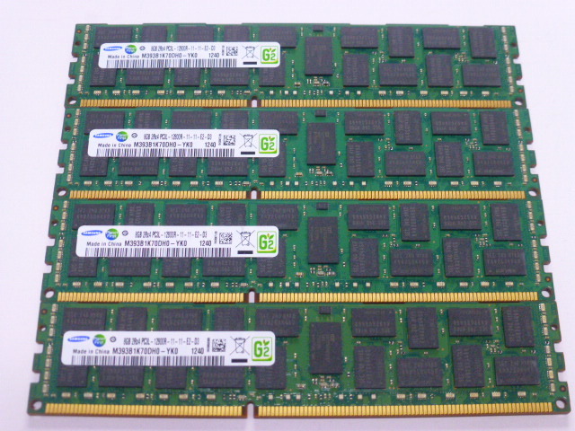 > メモリ サーバーパソコン用 低電圧 1.35V Samsung PC3L-12800R(DDR3L-1600R) ECC Registered 8GBx4枚 合計32GB 起動確認済みです①