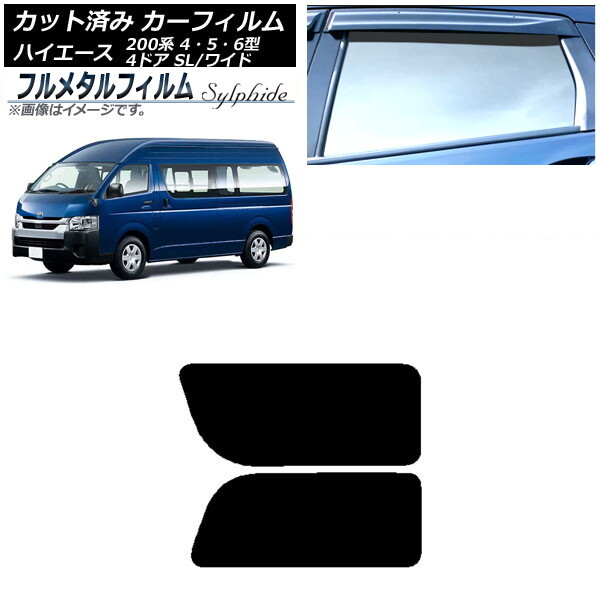 > カーフィルム トヨタ ハイエース 200系 4/5/6型 バン 4ドア スーパーロング/ワイド 2013年12月~ リア 2列目 左右固定窓 プライバシーガ…