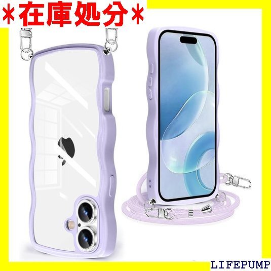 - iPhone 16 Plus 用 ケース クリア ショ 取り外し可能 長さ調整可能 ワイヤレス充電対応 パープル 1961
