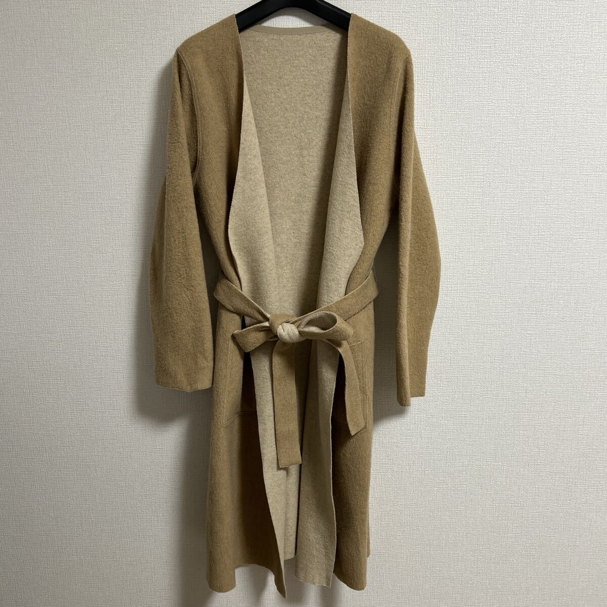 - sov. ソブ ノーカラーガウンコート ミドル丈ロング丈 ウールコートバイカラー 羽織 防寒 ルーズ リラックス ベルトマーク ウエストリボン