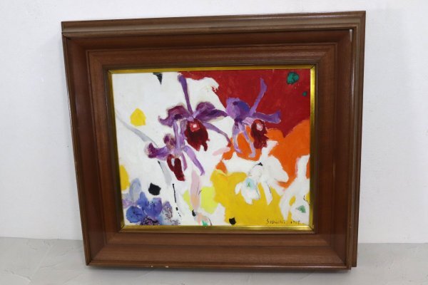 - 【真作】高間惣七 「洋蘭」 油絵 8号 油彩画 額装 横浜美術館所蔵作家