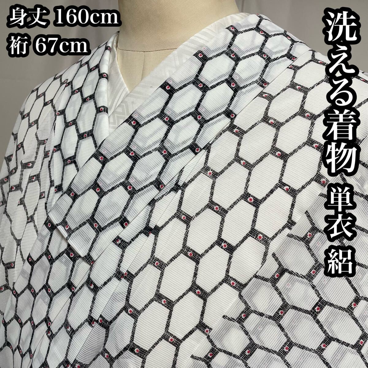 - #H651 単衣 洗える着物 ポリエステル 絽 亀甲 身丈160cm 裄67cm 和装 和服 着物【wellriver】