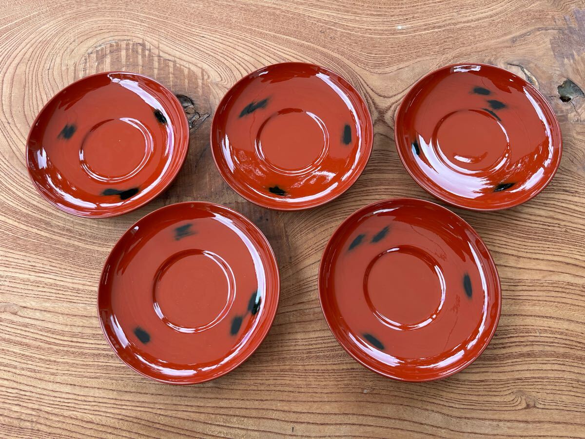 - m☆根来塗(ねごろぬり)の茶托(ちゃたく) 木製漆器 漆芸 漆器 伝統工芸 茶道具 茶器 コレクション レトロ ヴィンテージ◎