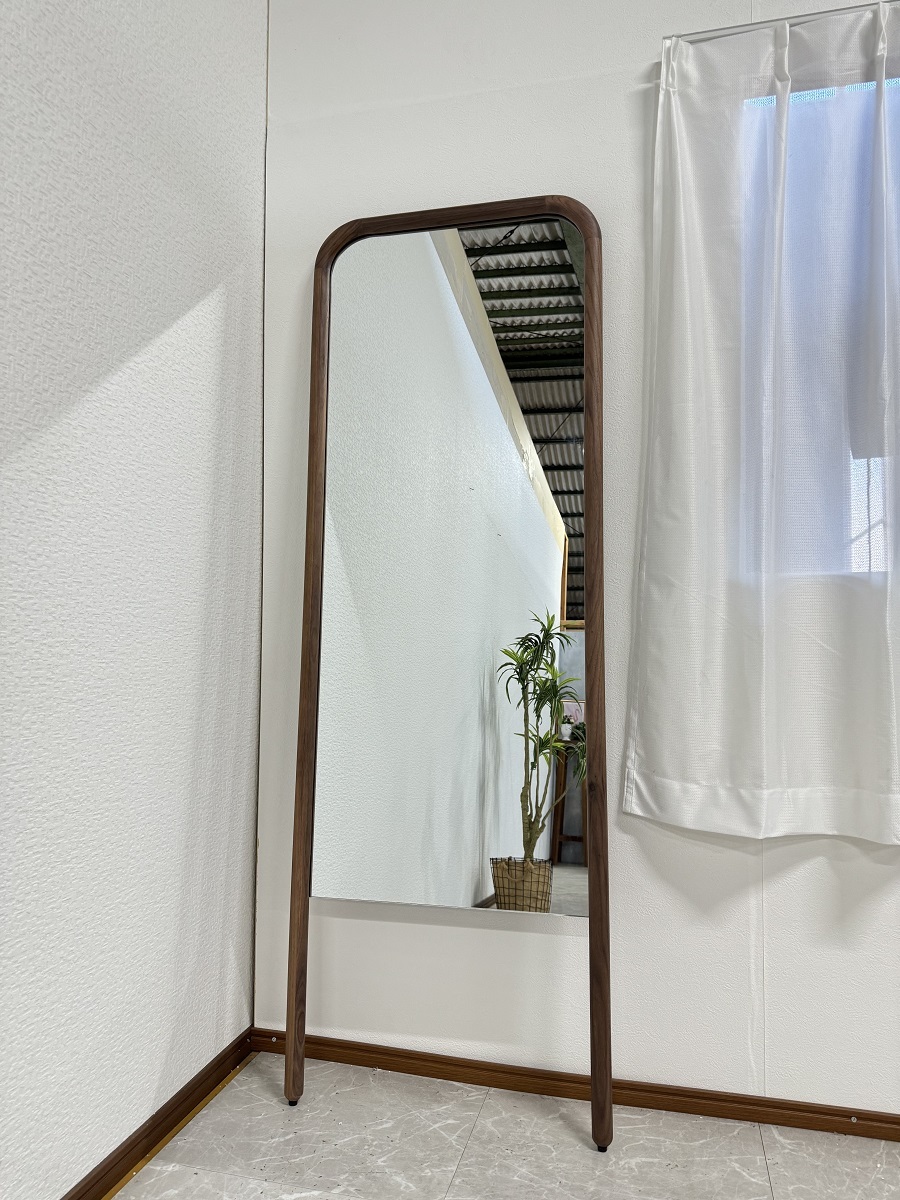 - ミラー 鏡 幅55cm 立て掛け 姿鏡 全身鏡 天然木 北欧 ミラー 完成品 スーク ウォールナット アウトレット 現品限り 70716F