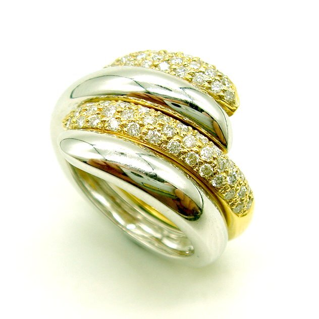 - R1014:K18YG ダイヤ / K18WG 地金 セットリング(#14)