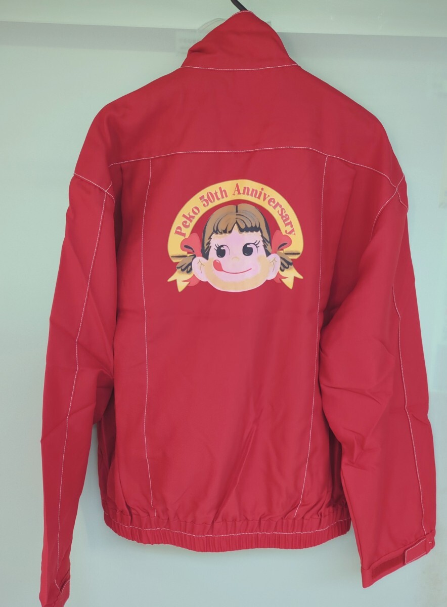 > 不二家 ペコちゃん 非売品 ジャケット ブルゾン L スタッフ ジャンパー アウター 新品 未使用 50周年 赤