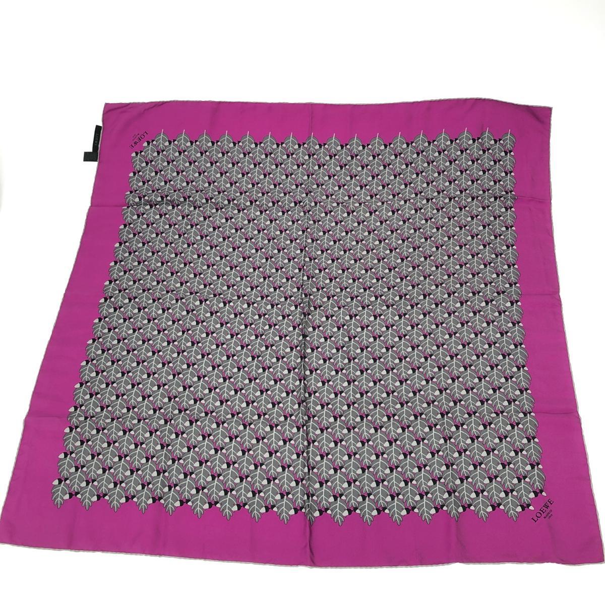 > 良好◆LOEWE ロエベ スカーフ ◆ グレー/パープル シルク100% レディース 服飾小物