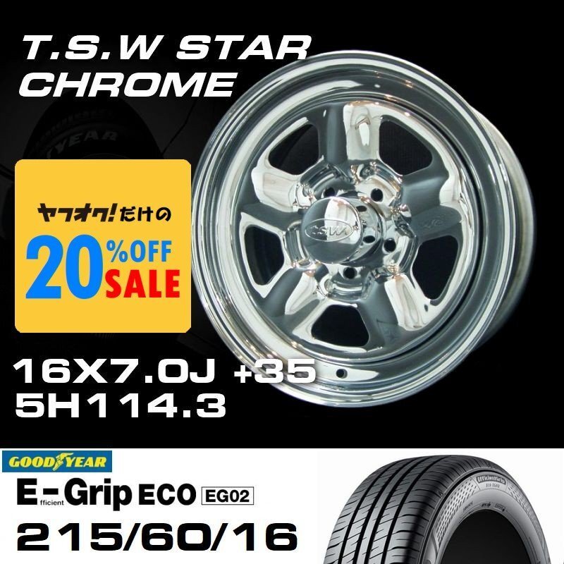 > 特価 TSW STAR クローム 16X7J+35 5穴114.3 GOODYEAR E-GRIP 215/60R16 ホイールタイヤ4本セット (ハイエース/ハイラックス)