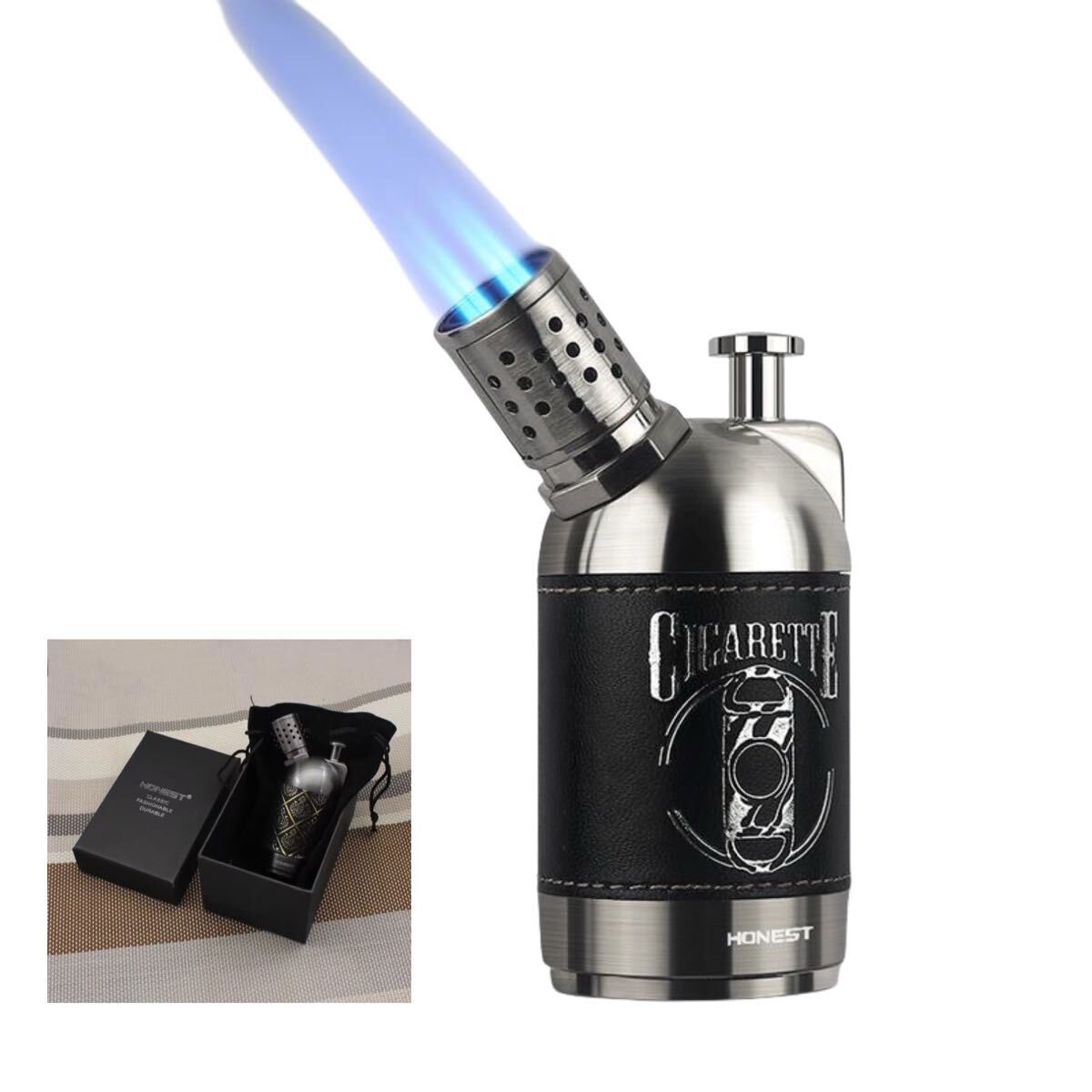 - 喫煙具超大容量ガスタンク四連直噴ブルーフレーム強火力革巻き風デザインシガーガスライターターボライター シガーカッターデザイン