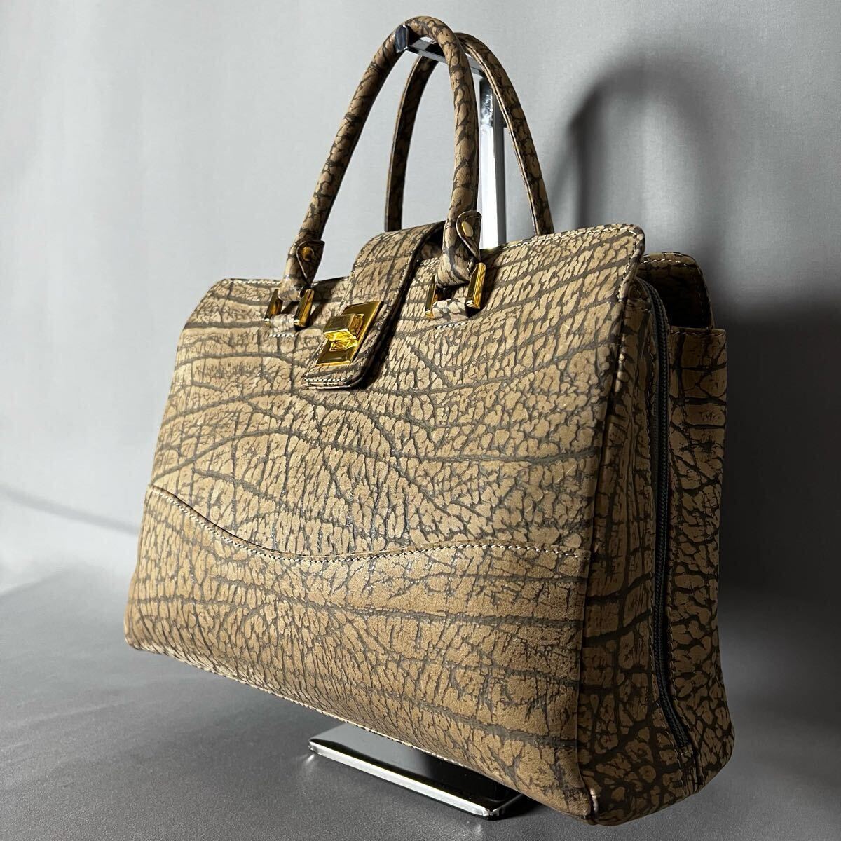 > ★1円スタート★ アンテロープ レイヨウ バッファロー ハンドバッグ ベージュブラウン 茶 ゴールド金具 エキゾチックレザー K40.