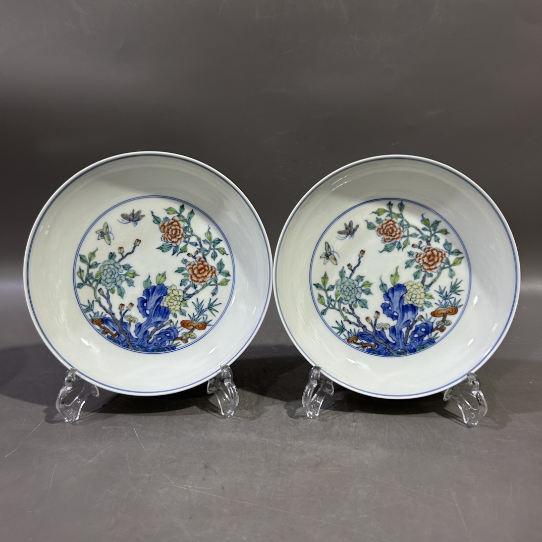 - ■TH109■大清雍正年制款 闘彩の牡丹花卉紋盤 時代物 古玩 唐物 古陶磁器■
