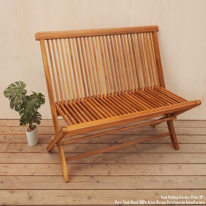 > 折りたたみチェア 二人掛け ガーデンチェア チーク材 椅子 木製いす 天然木イス 完成品 バリ家具 アジアン家具