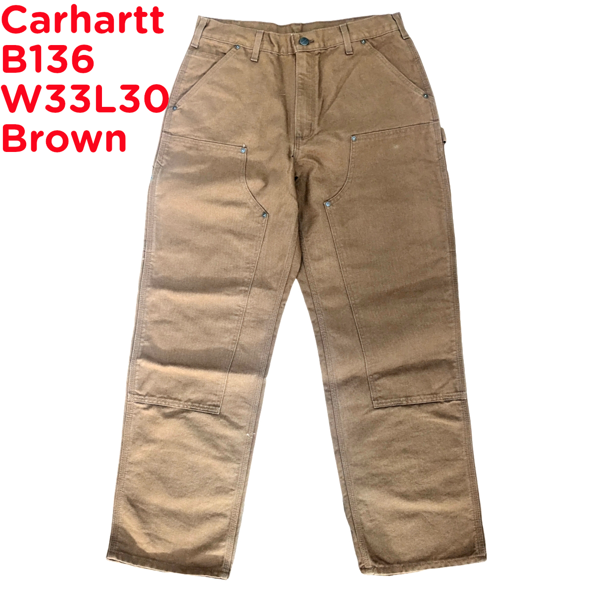 - アメリカ製 カーハート B136 W33L30 ブラウン ダブルニー ワークパンツ ペインターパンツ