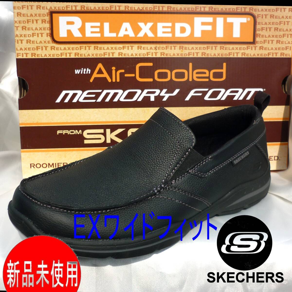 - 定価12650円新品27cmスケッチャーズ Skechers 黒ローファー リラックスドフィット エクストラワイド幅/幅広甲高