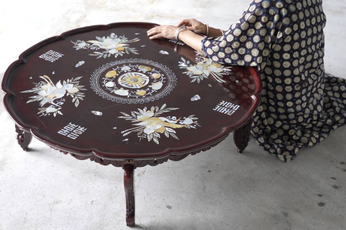 - 螺鈿 テーブル 座卓 ローテーブル 中国家具 時代物 漆塗り