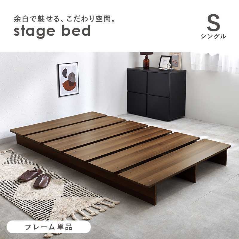 - お部屋が広く見えるロースタイルのステージベッド シングル 耐過重350キロ ブラウン色 フレームのみ 幅120