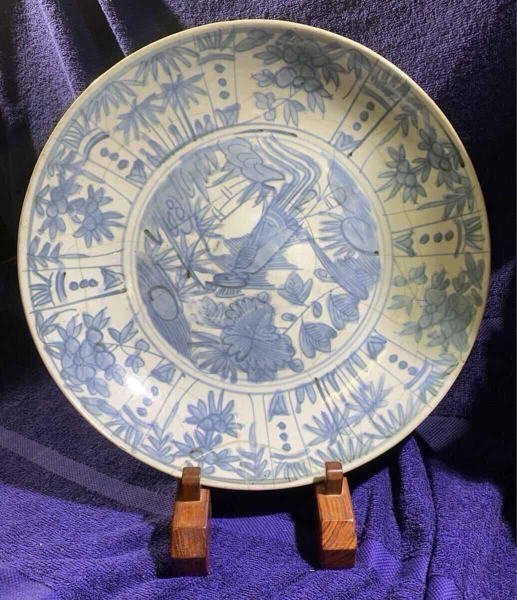 - 中国 古染付 #呉須 34cm 中皿 智
