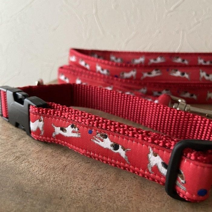 - ジャックラッセルテリア 首輪&リードのセット・レッド アメリカ製