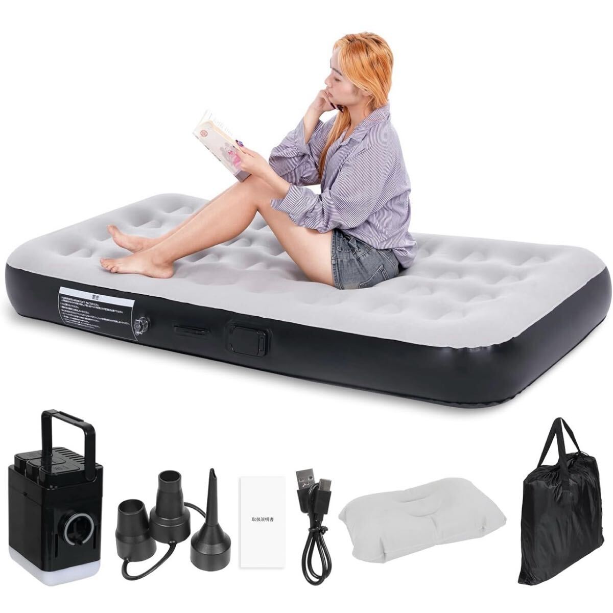 - エアーベッド シングル 電動ポンプ内蔵 エアーマット キャンプ 布団 来客用 防災 自動膨張 コンパクト 車中泊 エアベッド エアーマットレス