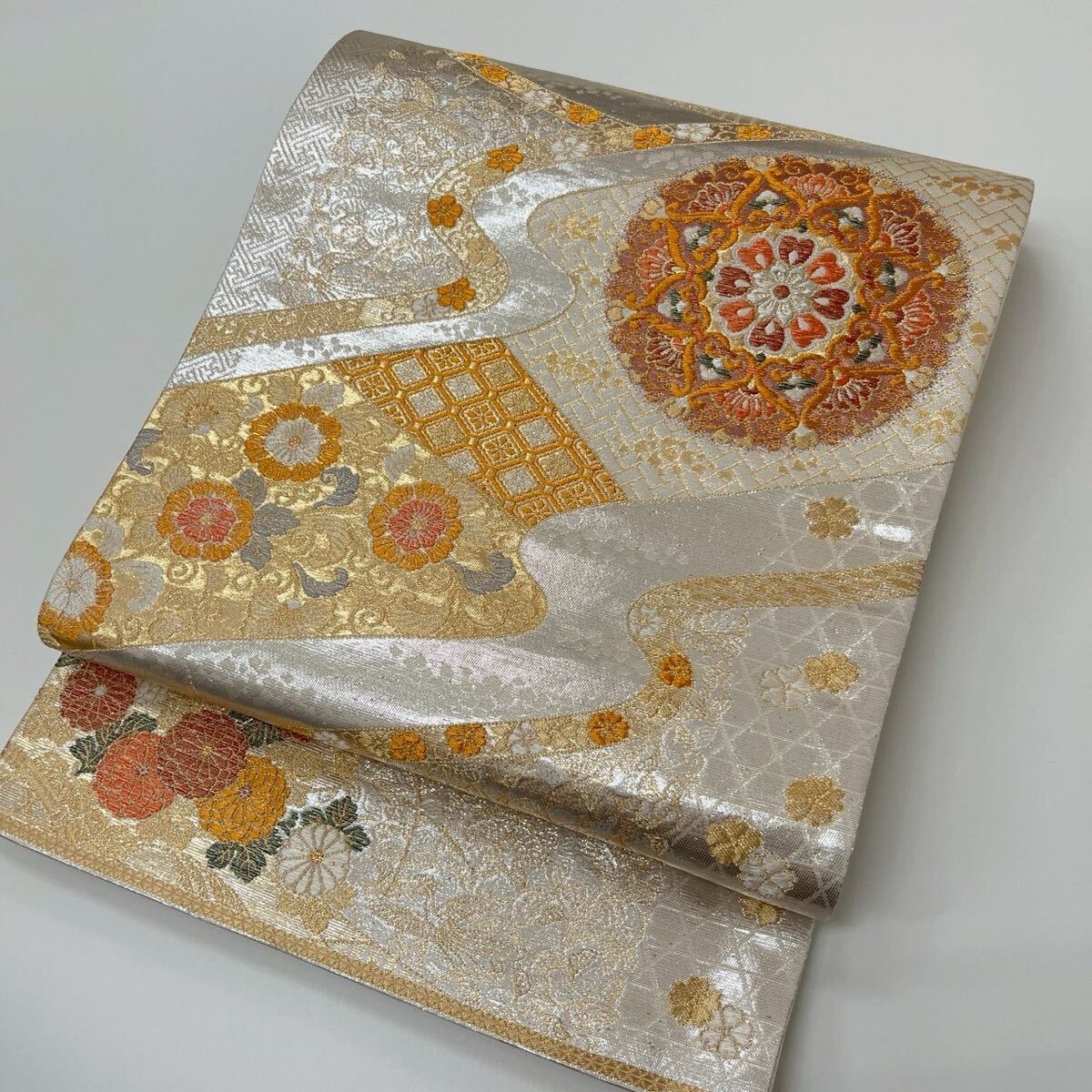 - 袋帯 正倉院文様 金彩 美しい花 正絹 W-2884