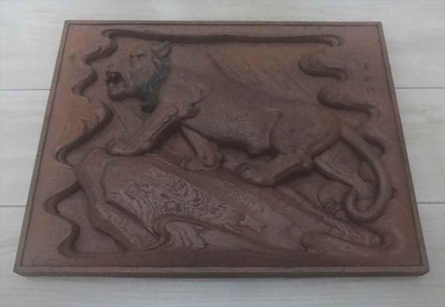 - ■USED■木彫り■彫刻家 平尾翠邦作・トラの額縁・壁掛け■