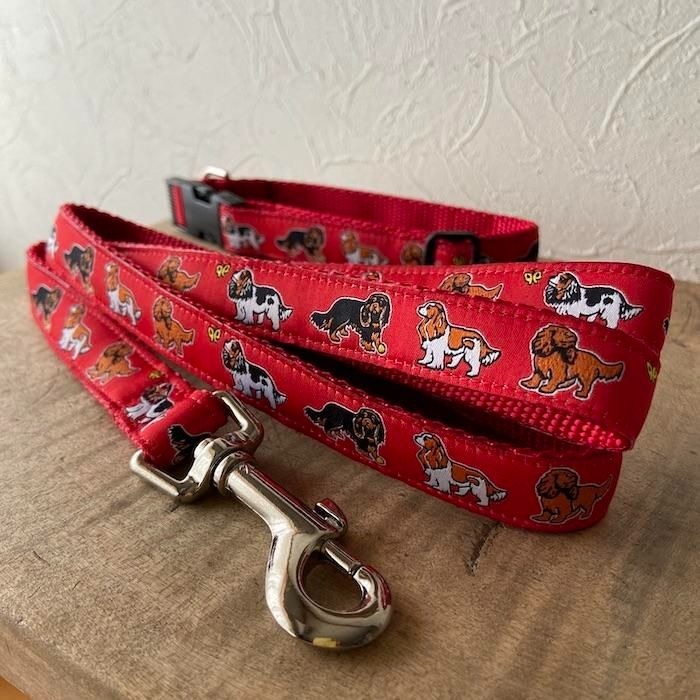 - キャバリアキングチャールズスパニエル・レッド 首輪&リードのセット アメリカ製