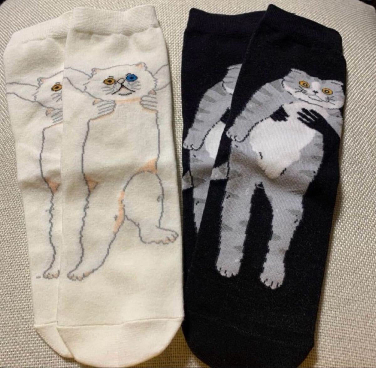 - 猫 ねこ 靴下 ソックス 22-24㎝ 2足セット