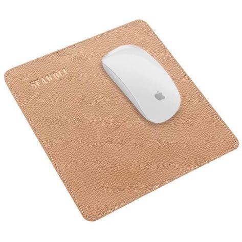 > マウスパッド 本革 小型 ゲーミング マウスパッド デスクマット 防水 滑り止め レザー マウスマット オフィス 自宅用21cm x 21cm ブラウン